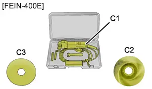| [FEIN-400E] | Coffret couteau électrique "FEIN-400E"-"C1" Couteau électrique -"C2" Lame de scie "FEIN" à moyeu déporté-"C3" Lame N°103 |