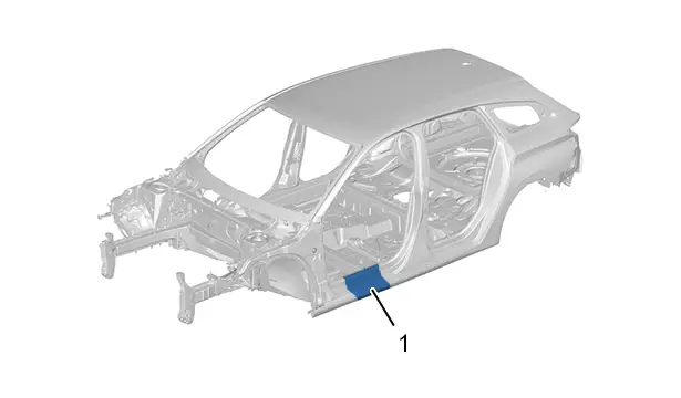 | (1) | Longeron extérieur section sous porte (bas de caisse) |