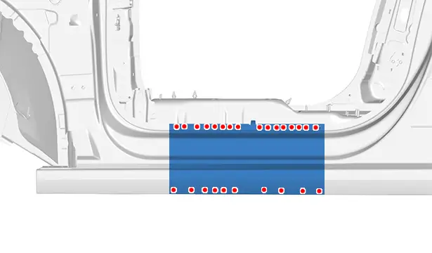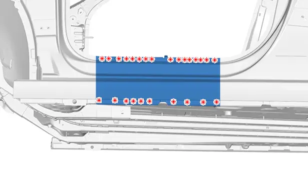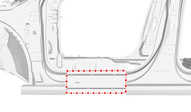 Déposer le longeron extérieur section sous porte (bas de caisse).
