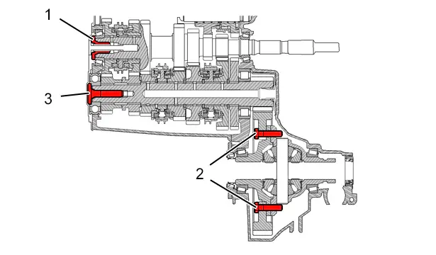 | (3) | Vis (Arbre secondaire / Roulement) | 13 m.daN |