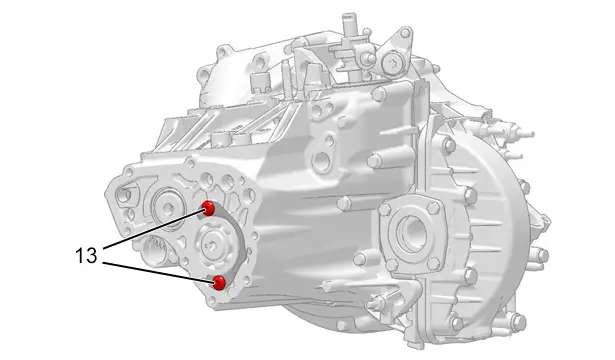 | (13) | Vis (Anneau d’arrêt de roulement de 6ème / Carter de boîte de vitesses) | 2,4 m.daN |