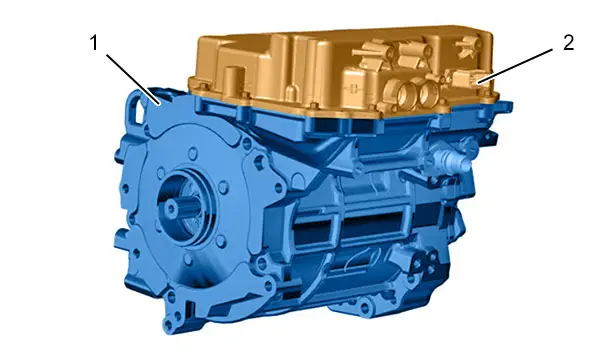 (1) Machine électrique de traction (Moteur électrique synchrone triphasé à aimants permanents) .
