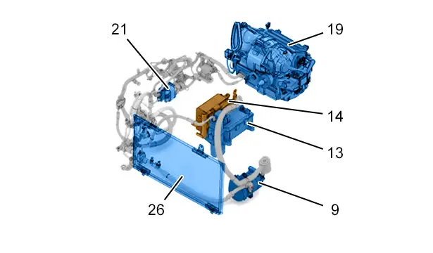 (22) Pompe à eau circuit de refroidissement de la batterie de traction.